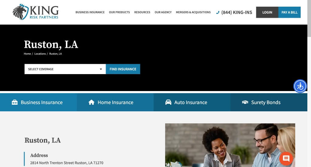 Esurance made it onto our list of best insurance agency web designs, for obvious reasons. Fonts were bold to help break up written content, simple imagery was used, and a well organized navigation bar was added in. Another helpful aspect in this company was the ability to use their app, which allows customers to make a payment, update info, and file a claim. It was extremely helpful to chose a domain that matches their company’s name.