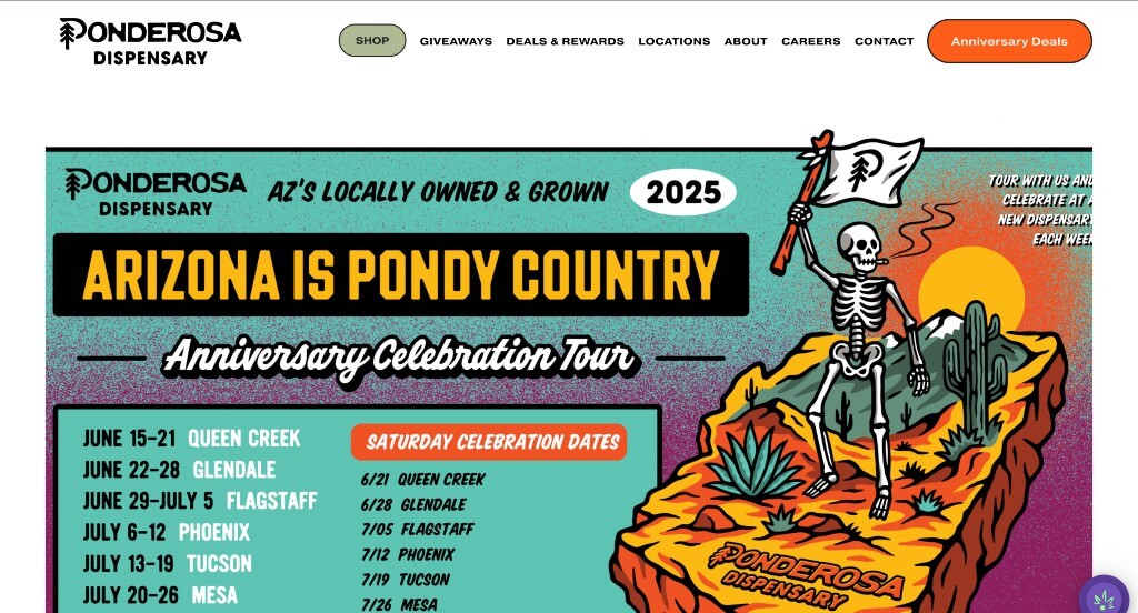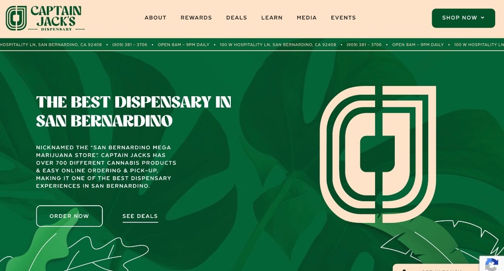 This is a good example of a website design for dispensaries looking for a professional website. The look and feel of the homepage of this dispensary website caught our attention because of their interesting logo design. The simple email subscription was another reason why we included this website in our list of the best website layouts for dispensaries. Ponderosa Dispensary clearly had a focus on internet marketing when building the page for their deals and rewards within their website. Give some thought to the one-of-a-kind design of this dispensary website when developing your next website.