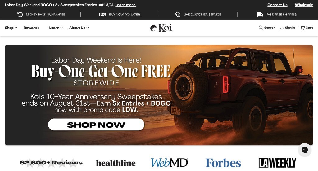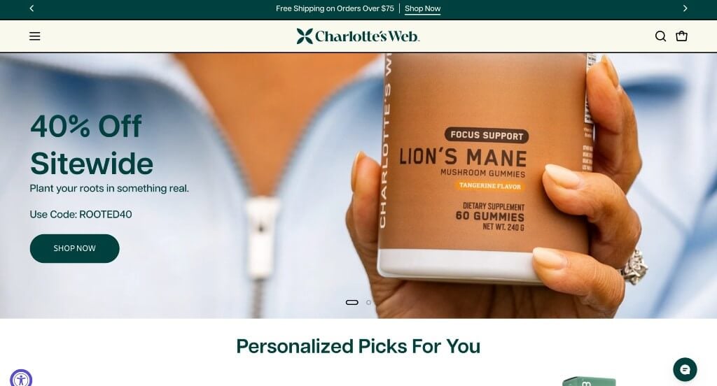 Right away, we noticed how this example made sure to show off their packaging design because it makes for a stronger brand identity. Large images are used to help break up content. We appreciated how there were buttons to guide viewers to additional information. This example did a great job with their white space that was balanced well.