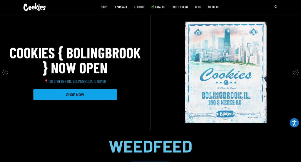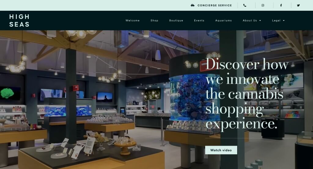 This is a good example of a web design for dispensaries who are looking for a custom look and feel. The dark background that creates a dramatic feel was likely the most impactful feature in the homepage of Cookies. The high-quality visuals were definitely refreshing for a professional site. They clearly had conversions in mind when designing the well-labeled navigation bar for their website. Any website designer mocking up websites for dispensaries will want to consider checking this website out.