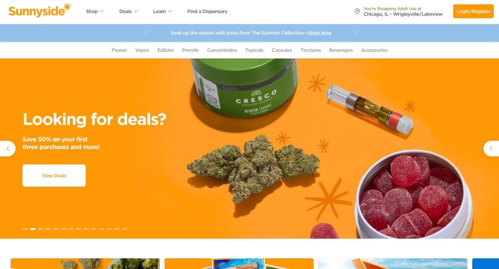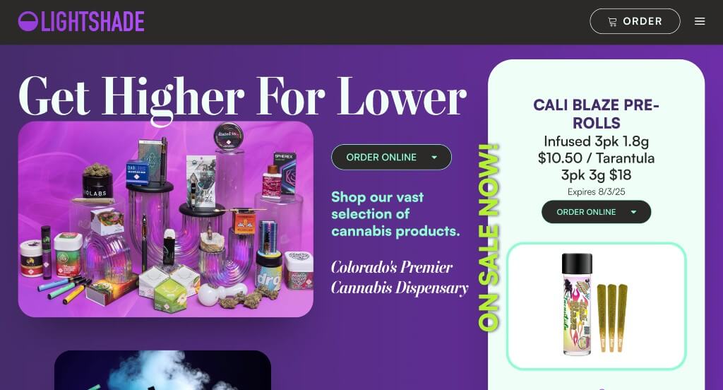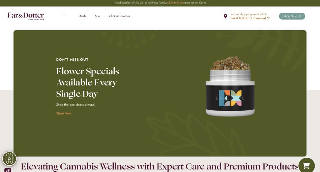 This is a great website example for dispensaries who are looking for a custom look and feel for their next site. We thought this website was a good design idea for dispensaries because of their bright color palette. The navigation bar with organized categories was definitely refreshing for a professional website. Sunnyside had digital marketing in mind when designing the large banner to show their sales offers. Give some thought to the unique design of this dispensary website when developing your next website.