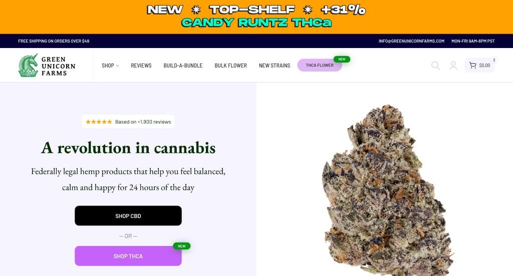 This is a good example of a website design for dispensaries to check out when looking for a professional look and feel for their next website. The clearly labeled pricing was probably the most impactful quality in the homepage of this website. The ability to build your own bundle was another reason why we included this website in our rankings for the top web design ideas for dispensaries. Green Unicorn Farms clearly had ease of use in mind when creating the well-labeled navigation bar for their website. If you are looking for template options for your next dispensary website, be sure to check this one out.