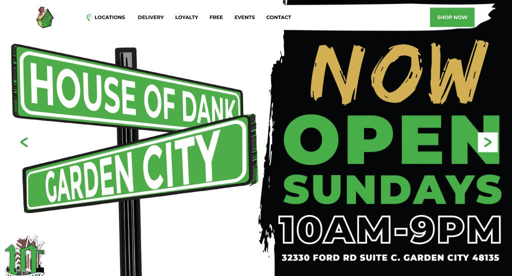 We immediately noticed the black and white color scheme used in the House of Dank website, which we liked because it matches their imagery. After scrolling past the navigation of this dispensary website, you’ll notice their use of icons throughout their site for better navigation. Another thoughtful quality in this clean dispensary site was their well-labeled navigation bar. They clearly had website usability in mind when creating the simple checkout process for their website. Don’t scroll past this website when considering design ideas for your next dispensary website!