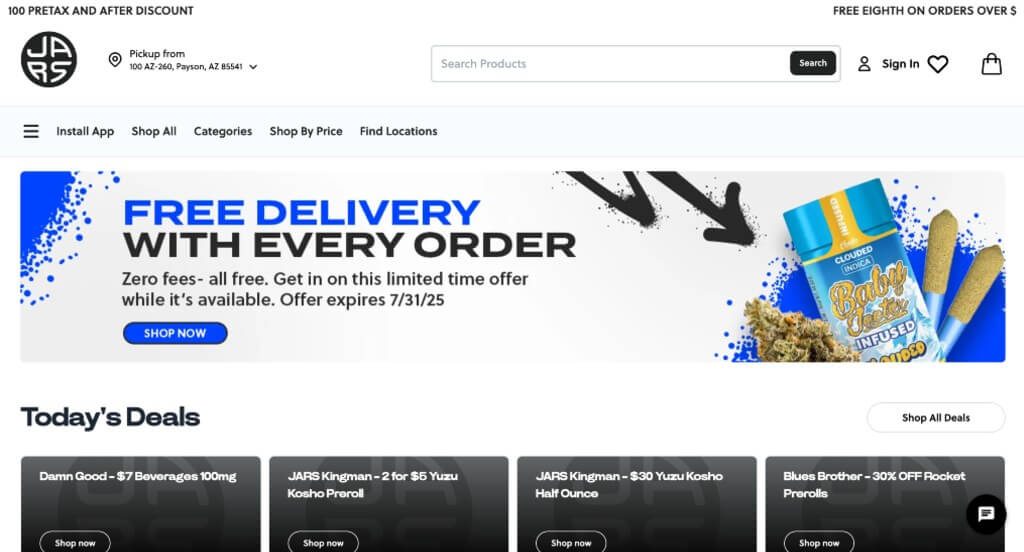 The website of JARS Cannabis ranked because it’s one of the nicer dispensary websites we reviewed. Of all the dispensary websites we reviewed, one of the features in this custom website we liked was the ability to shop by price ranges. The simple checkout process was definitely refreshing for a custom dispensary site. They clearly had website usability in mind when designing the simple navigation throughout their website. What a great website to review when designing your next dispensary website!