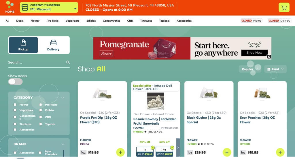 Showcasing a clean and intuitive layout, this website keeps things simple for a dispensary site. As you scroll through the homepage, one of the design qualities we liked was how easy they make it to see their products and put them into your cart. The clean, simple layout used in this homepage was definitely refreshing for a unique website. Coastal had internet marketing in mind when designing their website. For the dispensaries out there looking through website examples, make sure to check this one out!