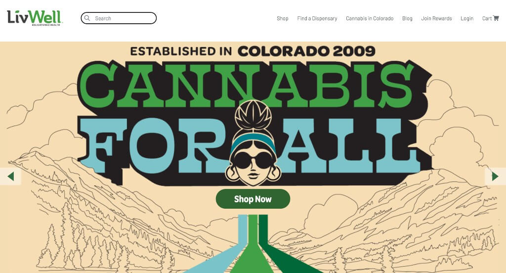 The website of LivWell ranked because it’s one of the better looking dispensary websites we came across. As you scroll through the homepage, one of the design qualities we liked was the layout that organizes their content. Another design quality in this creative dispensary website we liked was their natural color choices. Their use of buttons helped make this one of the top dispensary websites we considered. Talk about a great website to have included in this list!