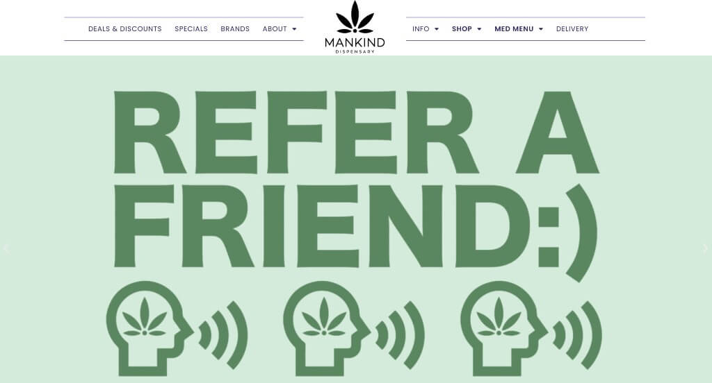 The website of Mankind Dispensary ranked because it’s one of the nicer dispensary websites we reviewed. One of the design features we liked most on the homepage of Mankind Dispensary was the simple sign-up for sales because it was rather refreshing for a dispensary website. The navigation bar with organized categories was one of the reasons we included this site in our rankings for the top web design ideas for dispensaries. From a marketing viewpoint, for a dispensary website we liked the way they utilized different fonts throughout their site. There was no shortage of reasons to include this website in our list of websites for dispensaries to consider when designing their next website.