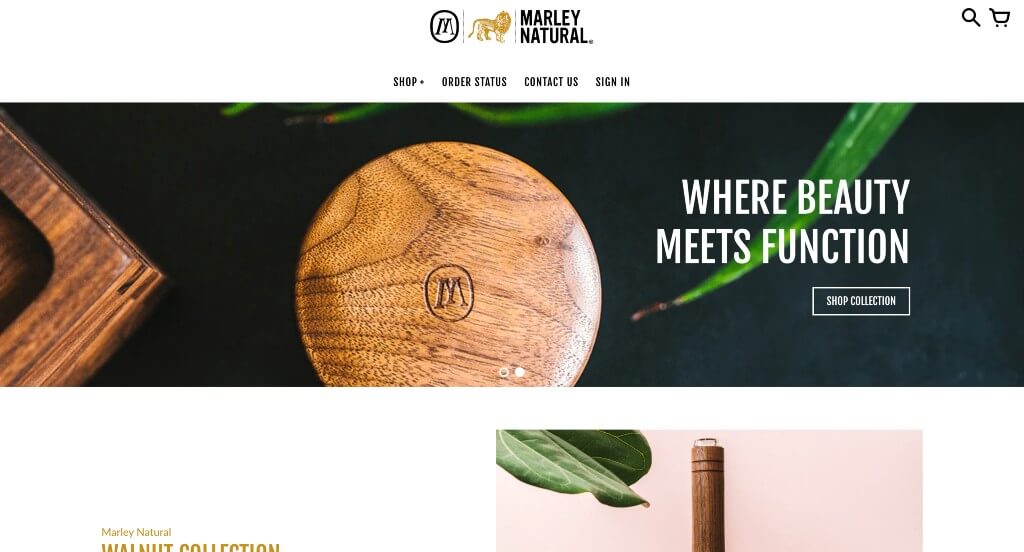 We love how this example starts with large images with bold fonts over them to introduce their brand. Showing off lots of their products was another smart choice that we really appreciated. Accents of green throughout the page was a great way to highlight information that is important to customers. Using buttons to help improve their overall navigation was another thing that we really enjoyed.