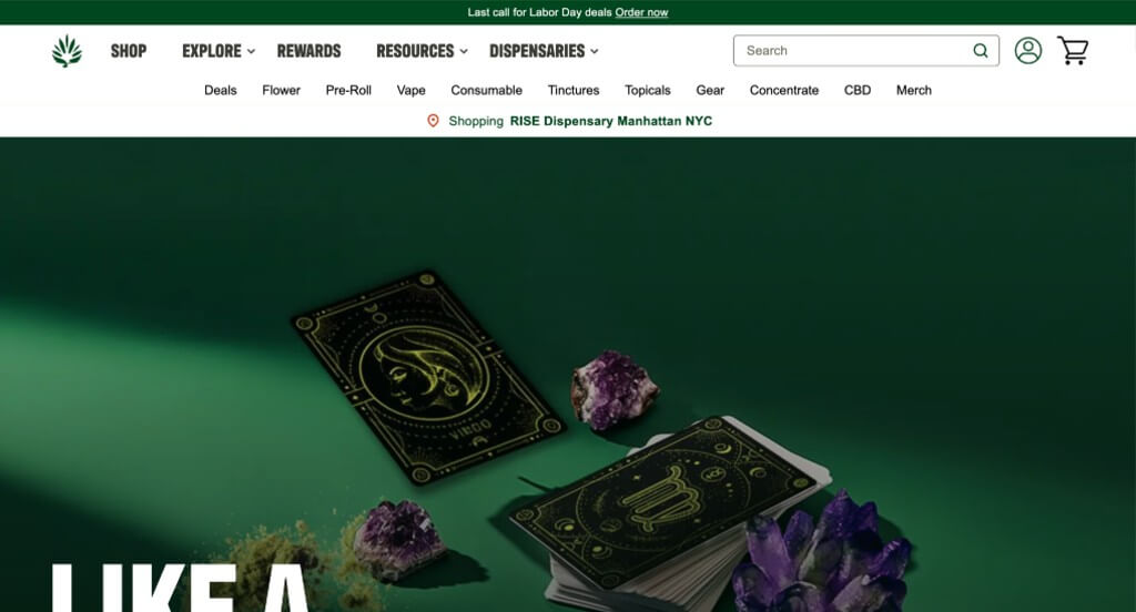 This is a great website example for dispensaries who are looking for a custom site layout. We thought this was a good example of a homepage layout for dispensaries because of their graphics used to promote certain products. The colorful tabs to show sales on any products was definitely refreshing for a custom site. GAGE Cannabis clearly had a focus on ease of use when building the domain for their website that matches their company name. These were just a few of the numerous qualities in this website we had to consider when putting together this list of top websites for dispensaries.