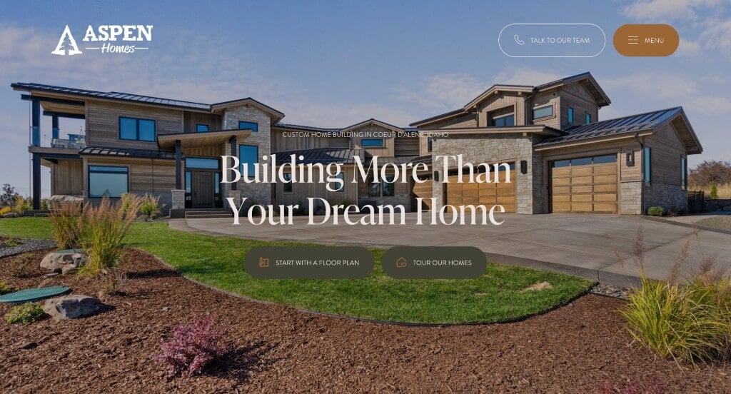 Right away, we noticed how Aspen Homes made use of a logo design that is interesting and logical. After scrolling through, you’ll notice smooth transitions to display images and text professionally. Using a domain that matches with their company name was a small choice that sets them apart. Aspen Homes clearly had a focus on marketing when creating large call to action buttons.