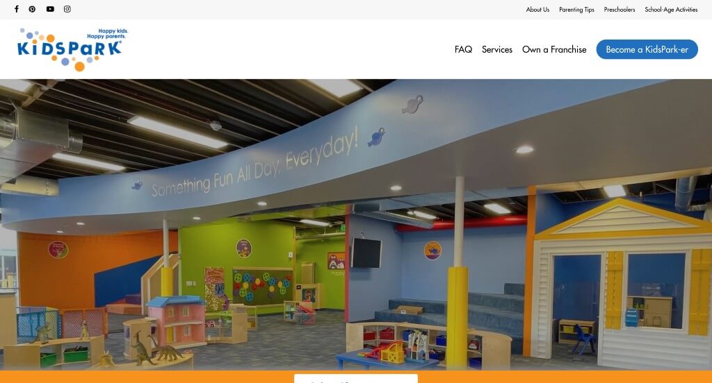 Right away, we noticed how this automatically playing video features a variety of kids having fun. Their paragraphs are short and to the point which is nice because people aren’t overwhelmed with information. Including a blog was another choice that we loved. Along with all of that, we really enjoyed how their navigation bar was well labeled and easy to use.
