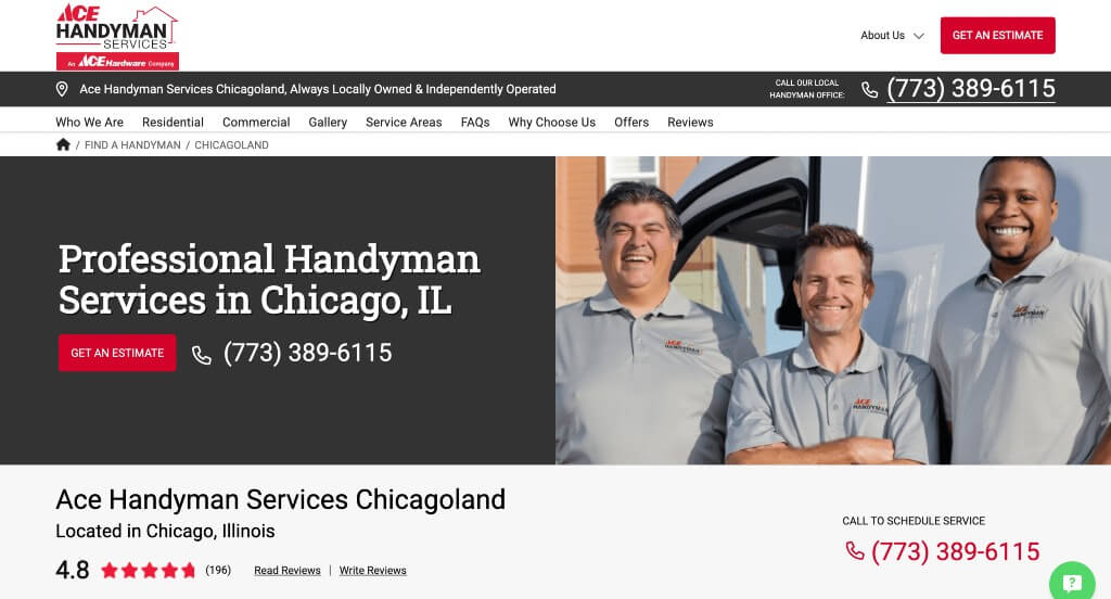 Something that anyone could notice about Chicago Handyman was their simplistic, but extremely creative logo design. Additionally, a feature that builds trust with incoming clients was their inclusion of their team members. We liked how they show reputable and well known brands that trust their services. Another thing that this company does well with is their pricing plans that help people understand what they can expect and how much it will cost.