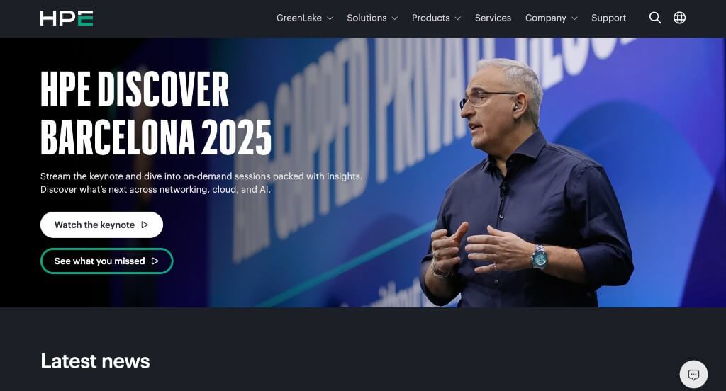 Right away, anyone looking at this site will notice how Hewlett Packard Enterprise embedded videos for their banner images. You may notice a small icon for their live chat feature, another great choice. If you scroll down, you’ll come across colorful boxes, which are striking to customers’ eyes and hold lots of information. Another good feature in Hewlett Packard Enterprise’s industrial web design was their use of many buttons to link customers to other areas of their site.