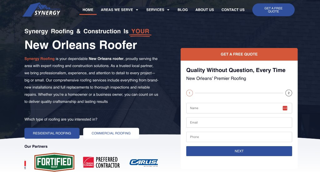 Synergy offers many different opportunities to reach out and contact them. They offer a form to schedule an inspection and a form to contact them. Also, their phone number can be found at the top and bottom of the page. Along with a link or two on the homepage that will bring you to the contact page. The homepage is easy to read with plenty of white and some red highlight important information.