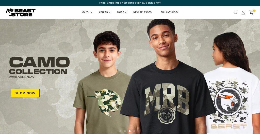 Color selection is likely Shop Mr. Beast’s best quality. Customers will notice bright accents in their design that carry through their imagery and products. While searching through products, you will notice that you can filter by size, color, product type and price. Additionally, you can sort products by a variety of categories for the order they appear in. A search bar is also included to help customers who are searching for something specific.