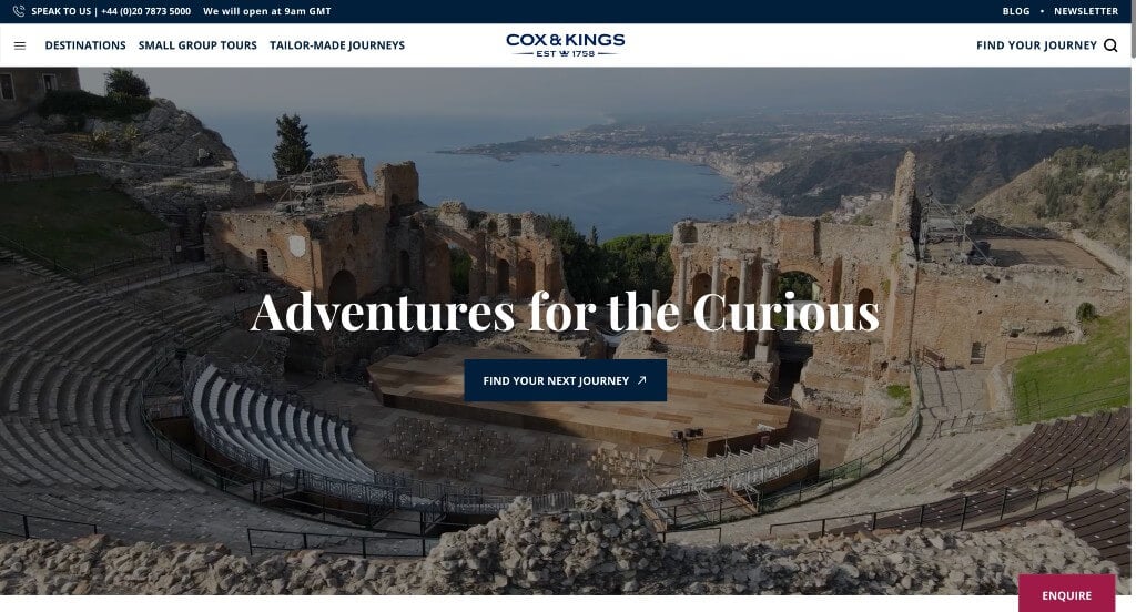 We really loved how Wild Frontiers made good use of high quality visuals including their videos. Additionally, their use of buttons and links, making their navigation better was a great choice. Showcasing little stars to show off their signature trips was something that customers will appreciate. They clearly had conversions in mind when building the aesthetically pleasing configuration for their website.