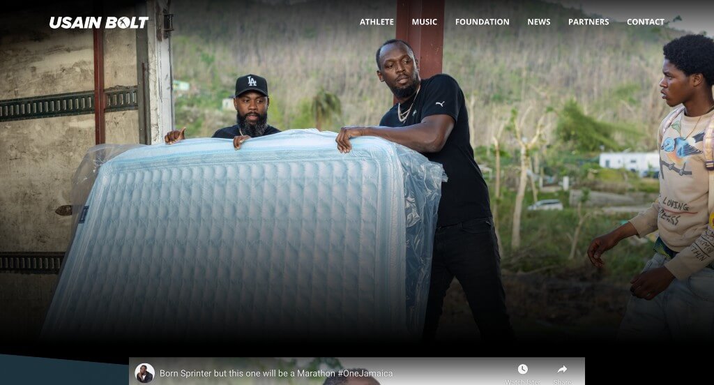 Olympic gold medalist, Usain Bolt’s web design is clean, simple, and effective. A mostly black color scheme allows for images to stand out. As for their content, we loved that he has his foot in more areas than just being an athlete. This design also includes lots of high quality, captivating images. Additionally, using a yellow accent was beautiful.