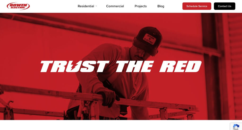 Using a catch phrase right away is a bold choice that we always appreciate. These red accents highlight their entire website, highlighting links and other important bits of information. Showing off their completed projects right on the homepage was another idea that we really liked. Including a blog was also nice because it provides information in a new way.