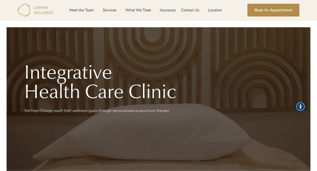 This is a great website design idea for an acupuncture company that is looking for inspiration for a custom website. As you scroll through the homepage of this website, one of the qualities you’ll notice right away is their creative arrangement for their images. Another design quality in this professional acupuncture site we liked was the short and to the point paragraphs. They had digital marketing in mind when building the stunning color scheme for their website. What a great website to review when designing your next acupuncture website!