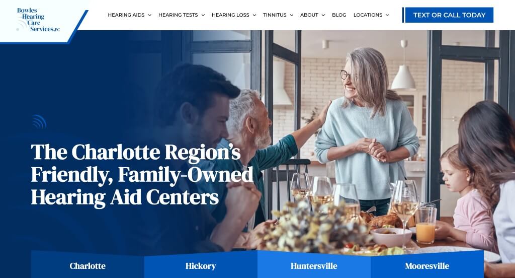 This is a great example for audiologists who are looking for a professional look and feel for their next website. Our web designers thought this website was a good example for audiologists because of their accent colors that add to the company’s design, but aren’t overpowering. The ability to look at hearing aids by brand within this website helped it make it into our list of the best website layouts for audiologists. They had conversions in mind when creating the simple navigation for their website. Don’t scroll past this website when considering design ideas for your next audiologist website!