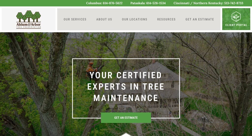 This is a great web design example for tree service companies who are looking for a professional look and feel for their next site. The inclusion of a search bar was probably the most impactful quality in the homepage of Davey. Another feature in this custom tree service website was the inclusion of bullet pointed information. They had internet marketing in mind when building the simple navigation for their website. With so many good reasons to consider this tree service website, it’s obvious why we included it in this list of the best websites!