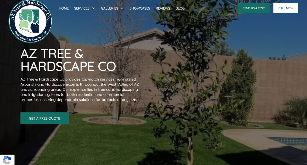 The website of Titan Tree Care ranked because it’s one of the better looking tree service websites we came across. The part of this website’s homepage that caught our attention was definitely the short and to the point paragraphs. This custom tree service website also does a good job with their informative blog. Titan Tree Care clearly had a focus on ease of use when creating the ability to text someone from their team. Give some thought to the great design of this tree service website when building your next website.