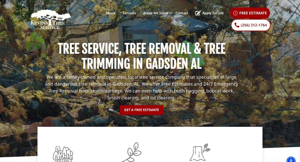This is a good example for a tree service website design looking for inspiration for a professional looking website. After scrolling past the navigation of this tree service site, you’ll immediately notice their graphics sprinkled throughout the pages. The inclusion of a live chat was another feature in this custom tree service website we enjoyed. J&L Budget Tree Service had website usability in mind when creating the inclusion of customer reviews for their website. These were just a few of the good qualities in this website to consider when putting together this list of top websites for tree service companies.