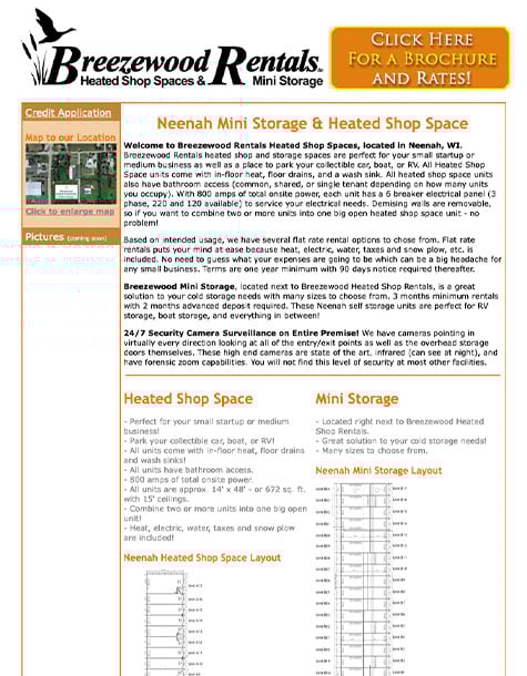 - Local SEO Optimization: We optimized the site for hyper-local search terms like “climate controlled storage Neenah” and “self-storage near me.” This ensures that when residents are in the middle of a move or a decluttering project, Breezewood Rentals appears at the top of Google Search and Maps.