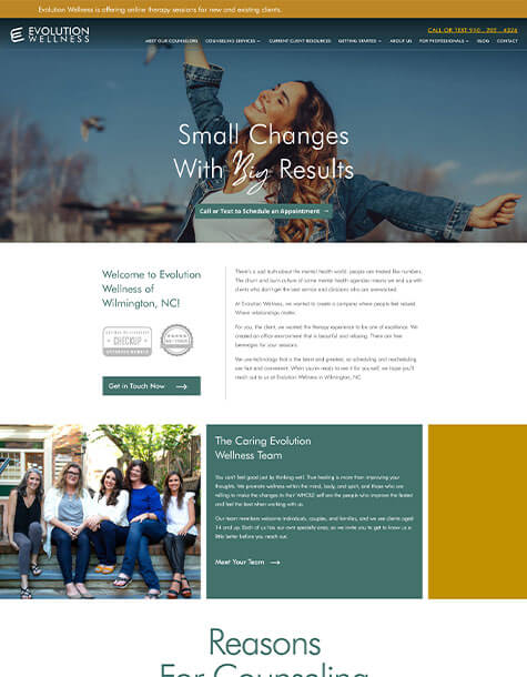 In the mental health industry, a website must act as both an educational resource and a trust-building platform. Evolution Wellness needed to reach a local North Carolina audience while competing in a saturated wellness market. They required: