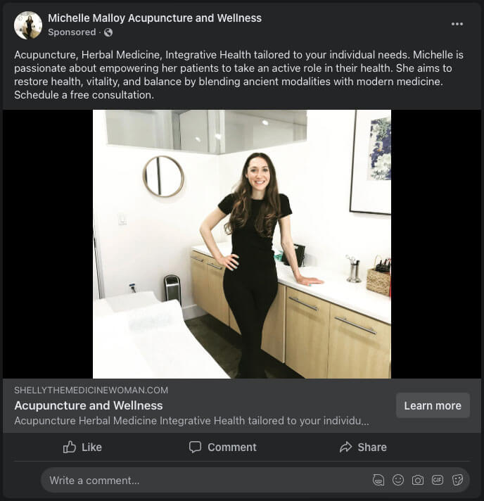 - Health and Wellness Content: Create informative and valuable content related to acupuncture and holistic health. Consider running ads that lead users to blog posts, videos, or downloadable resources that educate them about the benefits of acupuncture, how it works, and what to expect during a session. Providing valuable content can position you as an authority in the field and attract clients interested in natural healing methods.