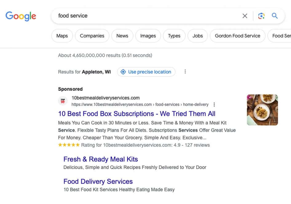 - Food Delivery: Create search ads with keywords like “food delivery near me” or “takeout restaurants.” This strategy targets individuals looking for convenient dining options at home or work. Promote your restaurant’s delivery service, online ordering platform, and quick turnaround time in your ad copy to encourage more orders.