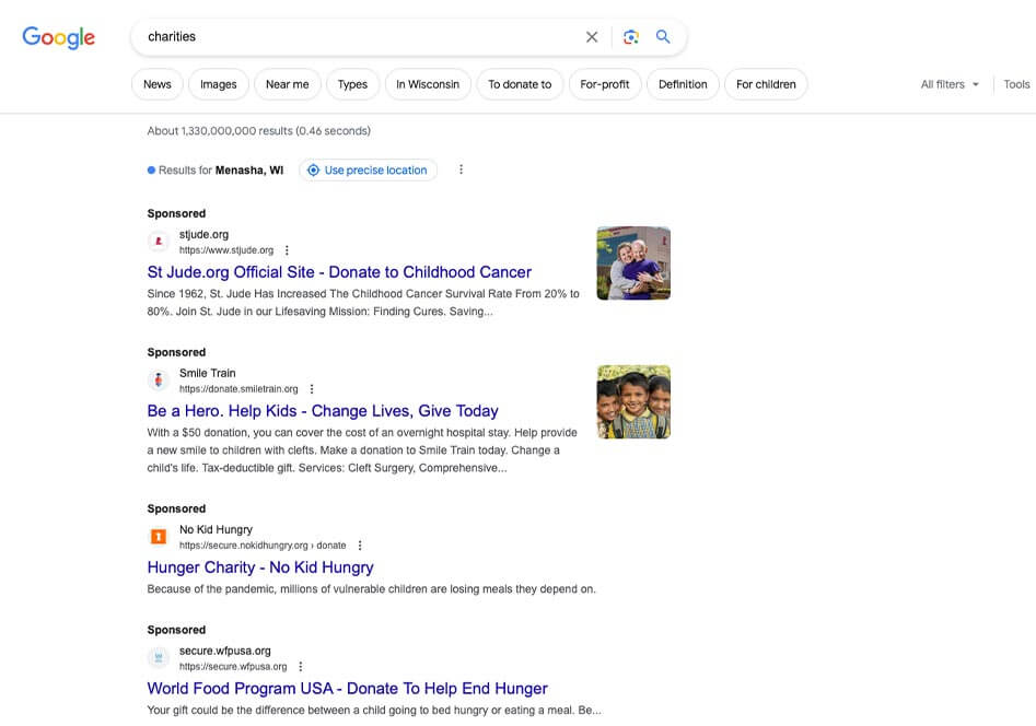 6.) Search Advertising for Charities