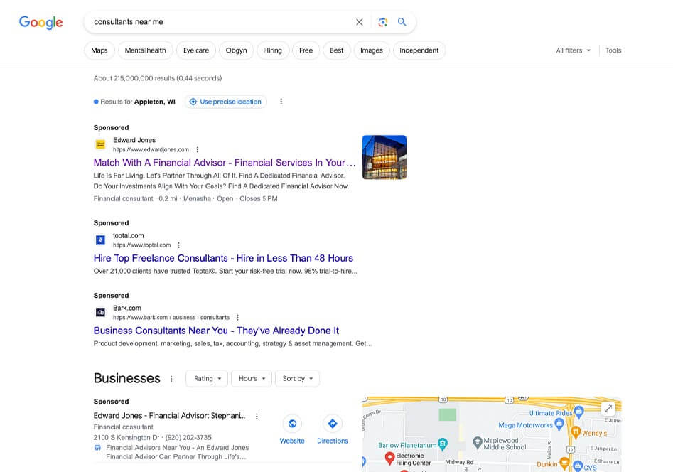 - Industry-Specific Consulting: Create search ads targeting specific industries in which you offer consulting services. For instance, if you provide marketing consulting for healthcare companies, use keywords like “healthcare marketing consultants” or “medical industry strategists.” This strategy allows you to connect with clients searching for consultants with expertise in their particular sector.