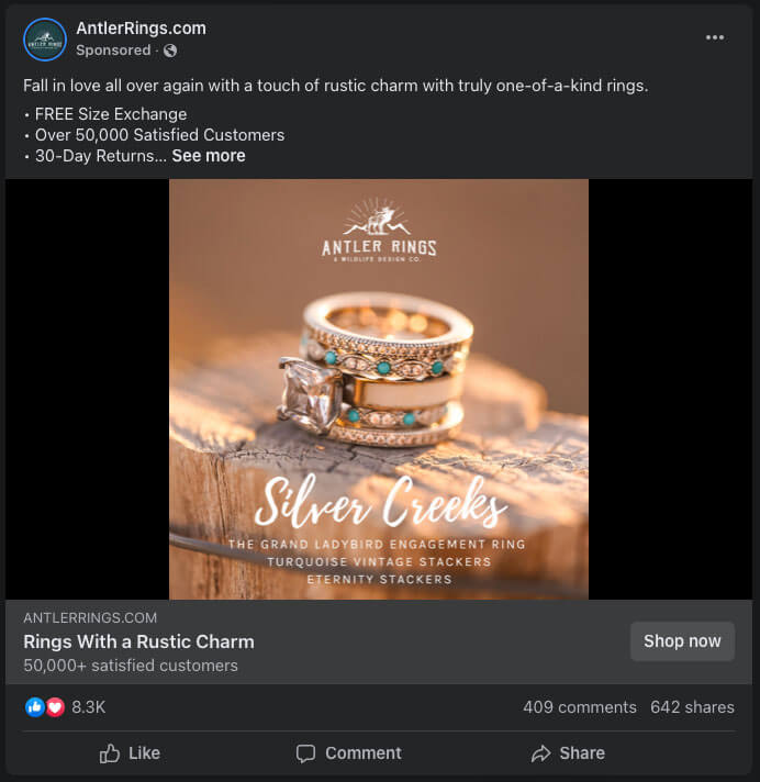 - Sharing Customer Stories: Create social ads featuring testimonials and photos from satisfied customers wearing your jewelry pieces. Target individuals who are interested in jewelry and fashion inspiration. By showcasing real-life examples of customers enjoying your jewelry, you can build trust and authenticity, encouraging potential customers to make a purchase and become loyal brand advocates.