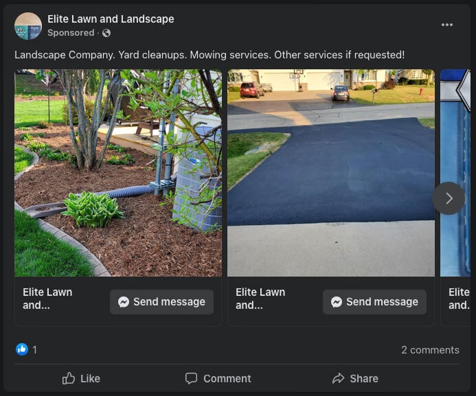2.) Social Advertising for Landscapers