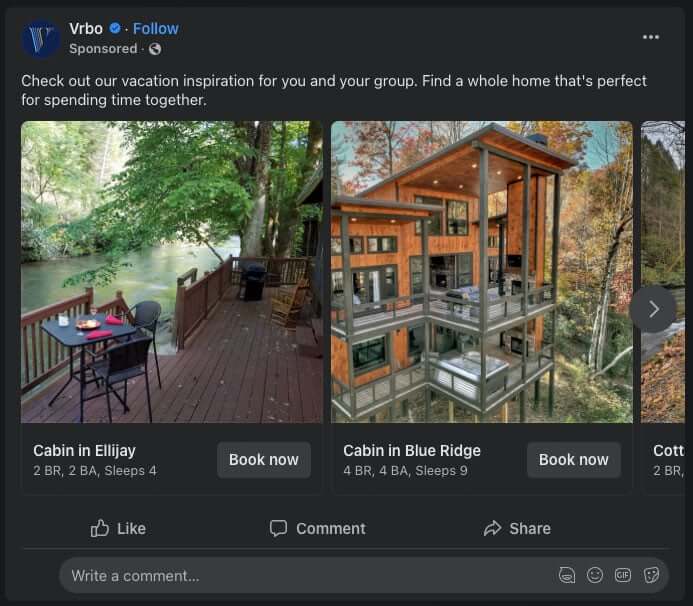 - Showcase Property Features: Use social media ads to highlight the unique features of your vacation rental properties. For instance, create ads with high-quality images and videos showcasing the stunning views, luxurious amenities, and comfortable interiors of your rentals to entice potential guests.