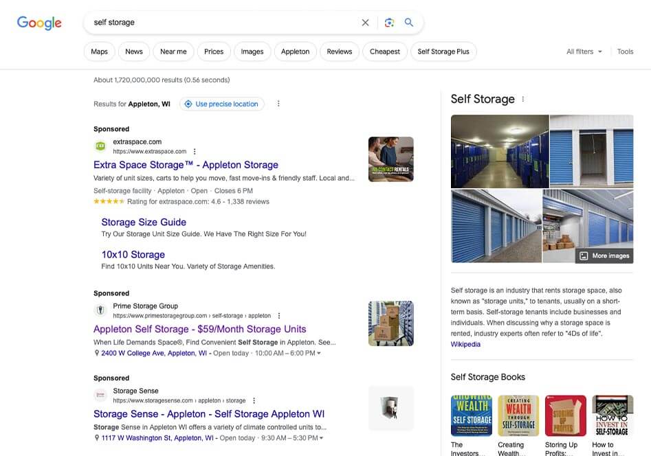 - Climate-Controlled Storage: Utilize search ads to promote your climate-controlled storage units, using keywords like “temperature-controlled storage near me” or “climate-controlled storage facilities.” This strategy allows you to attract customers looking for specialty storage options and emphasizes the value and convenience of your facility.