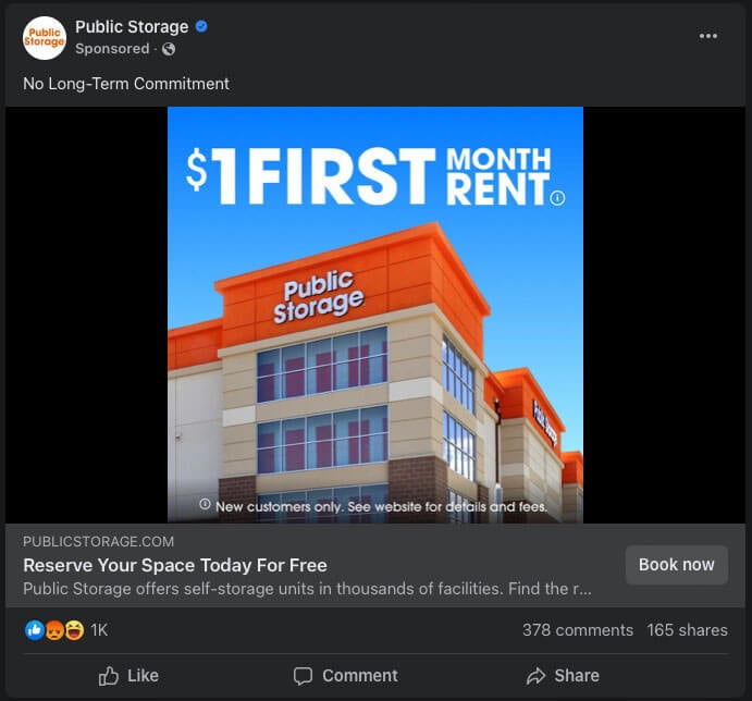 - Customer Testimonials: Use social media ads to share customer testimonials and success stories. Feature real-life experiences of satisfied customers who have benefited from your self-storage services. Target individuals who may be researching storage options to build trust and credibility for your facility.